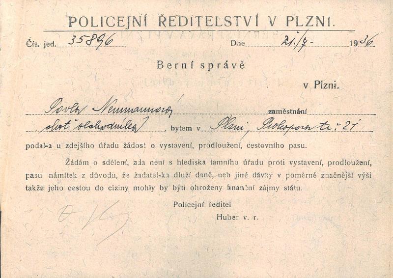 State Regional Archives in Pilsen > Police Directorate Pilsen > 1918-1951 > N > Neumannová Pavla