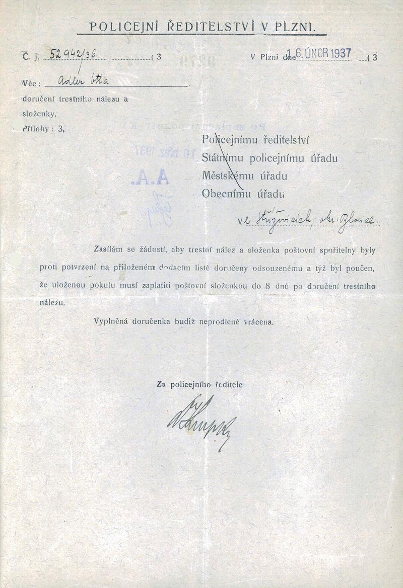 State Regional Archives in Pilsen > Police Directorate Pilsen > 1918-1951 > A > Adler Ota