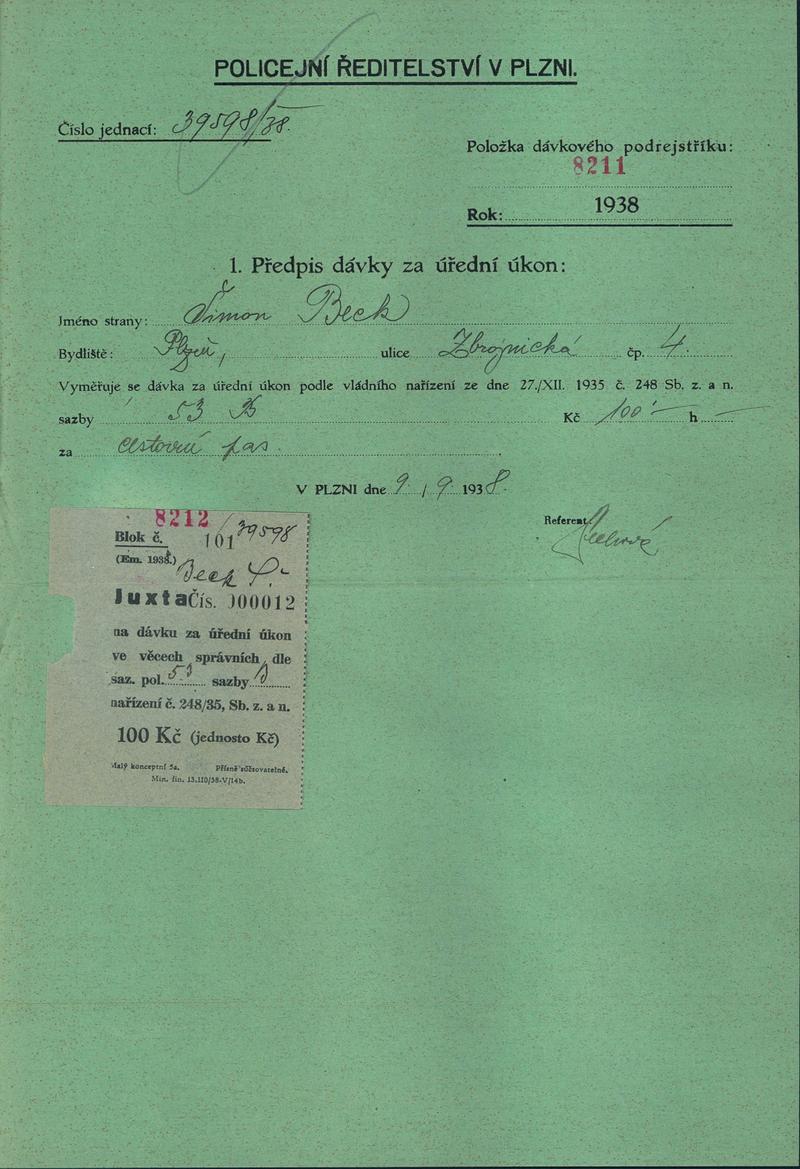 State Regional Archives in Pilsen > Police Directorate Pilsen > 1918-1951 > B > Beck Šimon