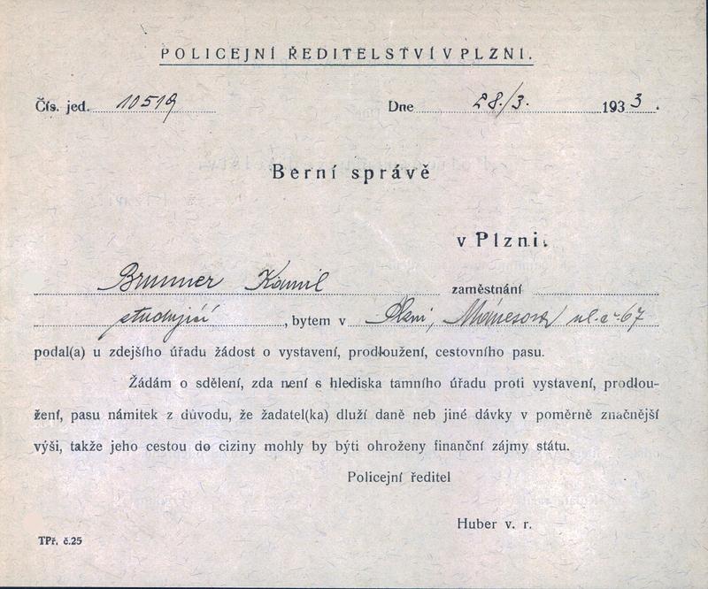 State Regional Archives in Pilsen > Police Directorate Pilsen > 1918-1951 > B > Brunner Kamil