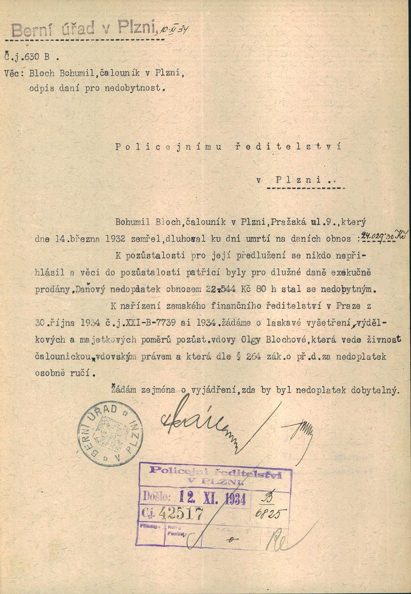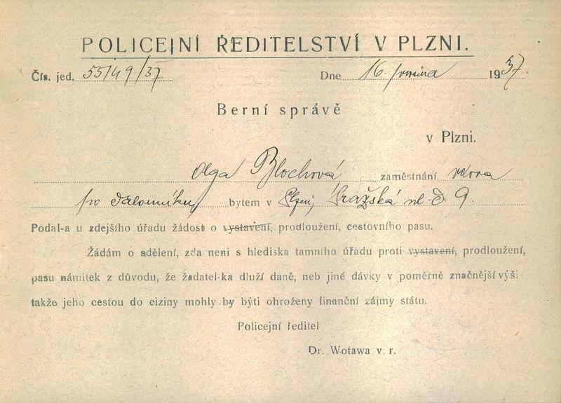 State Regional Archives in Pilsen > Police Directorate Pilsen > 1918-1951 > B > Blochová Olga