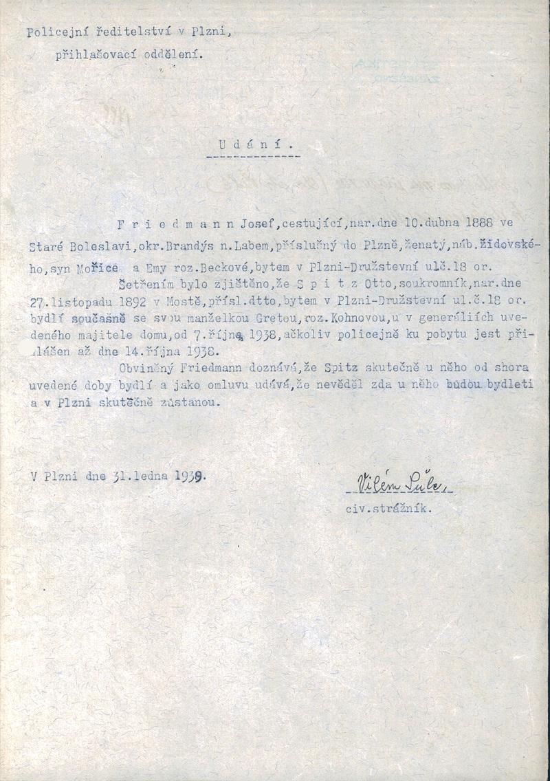 State Regional Archives in Pilsen > Police Directorate Pilsen > 1918-1951 > F > Friedmann Josef