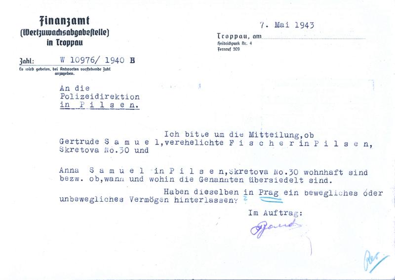 State Regional Archives in Pilsen > Police Directorate Pilsen > 1918-1951 > F > Fischerová Gertruda