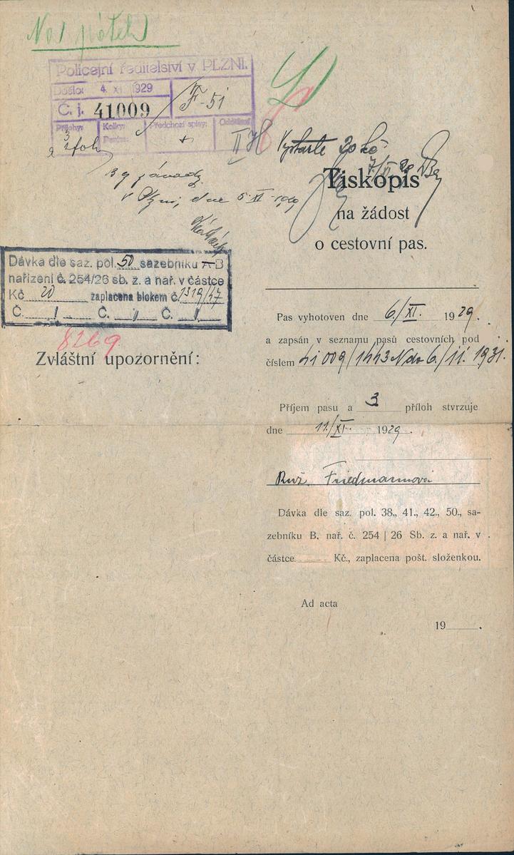 State Regional Archives in Pilsen > Police Directorate Pilsen > 1918-1951 > F > Friedmannová Růžena