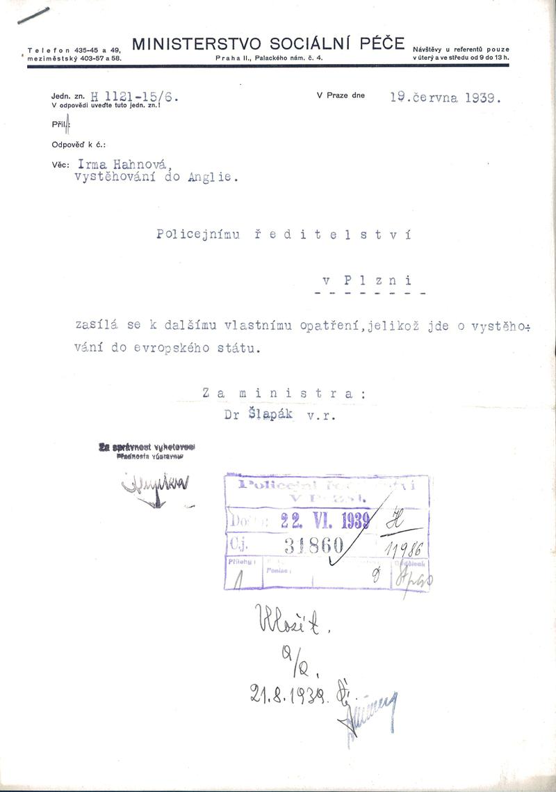 State Regional Archives in Pilsen > Police Directorate Pilsen > 1918-1951 > H > Hahnová Irma