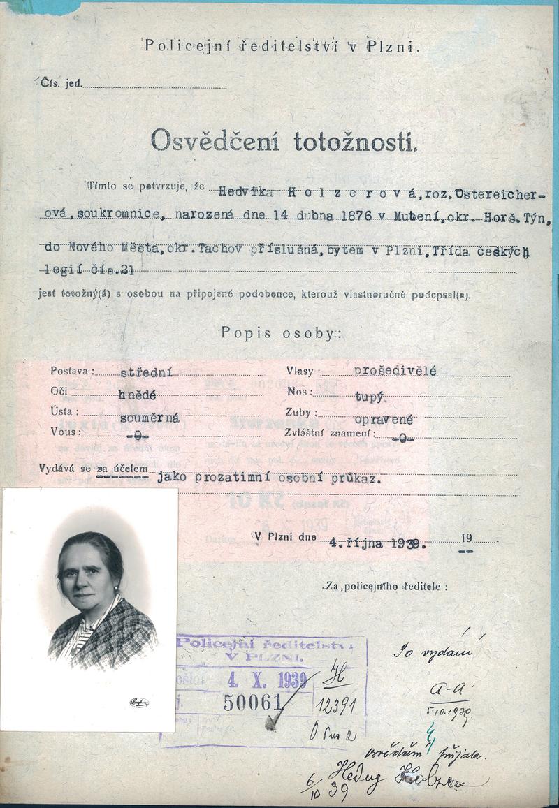 State Regional Archives in Pilsen > Police Directorate Pilsen > 1918-1951 > H > Holzerová Hedvika