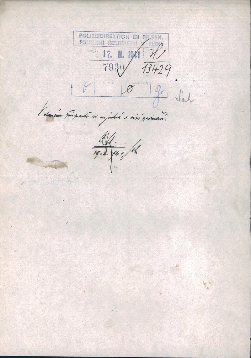 For publication purposes, contact the State Regional Archives in Pilsen, where the original document is located. The document was digitized by the Terezín Initiative Institute, the Terezín Album project.
