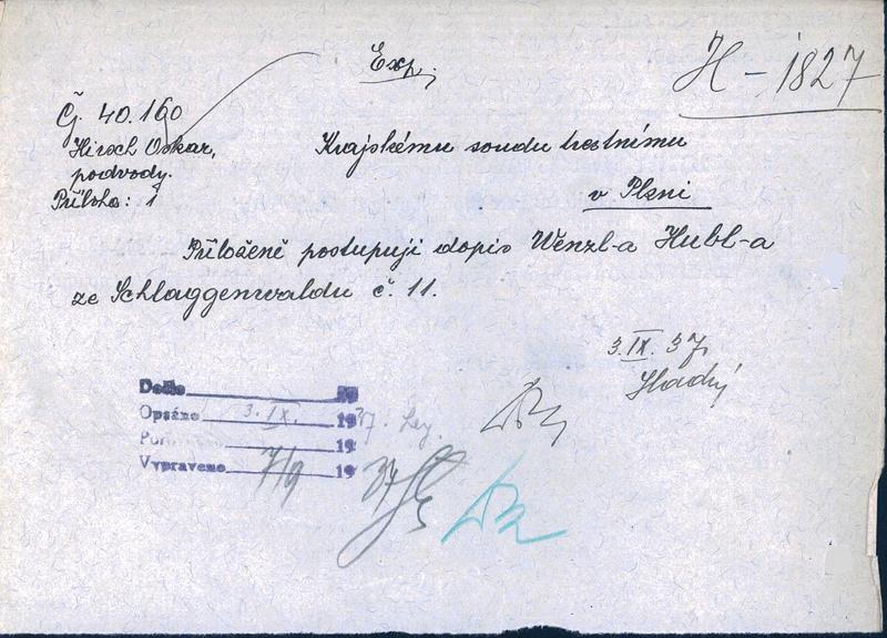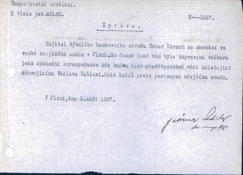 State Regional Archives in Pilsen > Police Directorate Pilsen > 1918-1951 > H > Hirsch Oskar