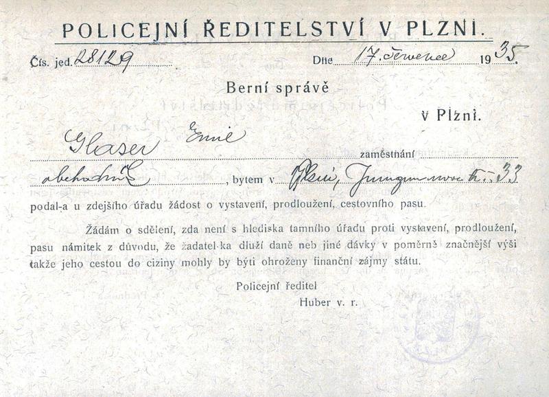 State Regional Archives in Pilsen > Police Directorate Pilsen > 1918-1951 > G > Glaser Emil