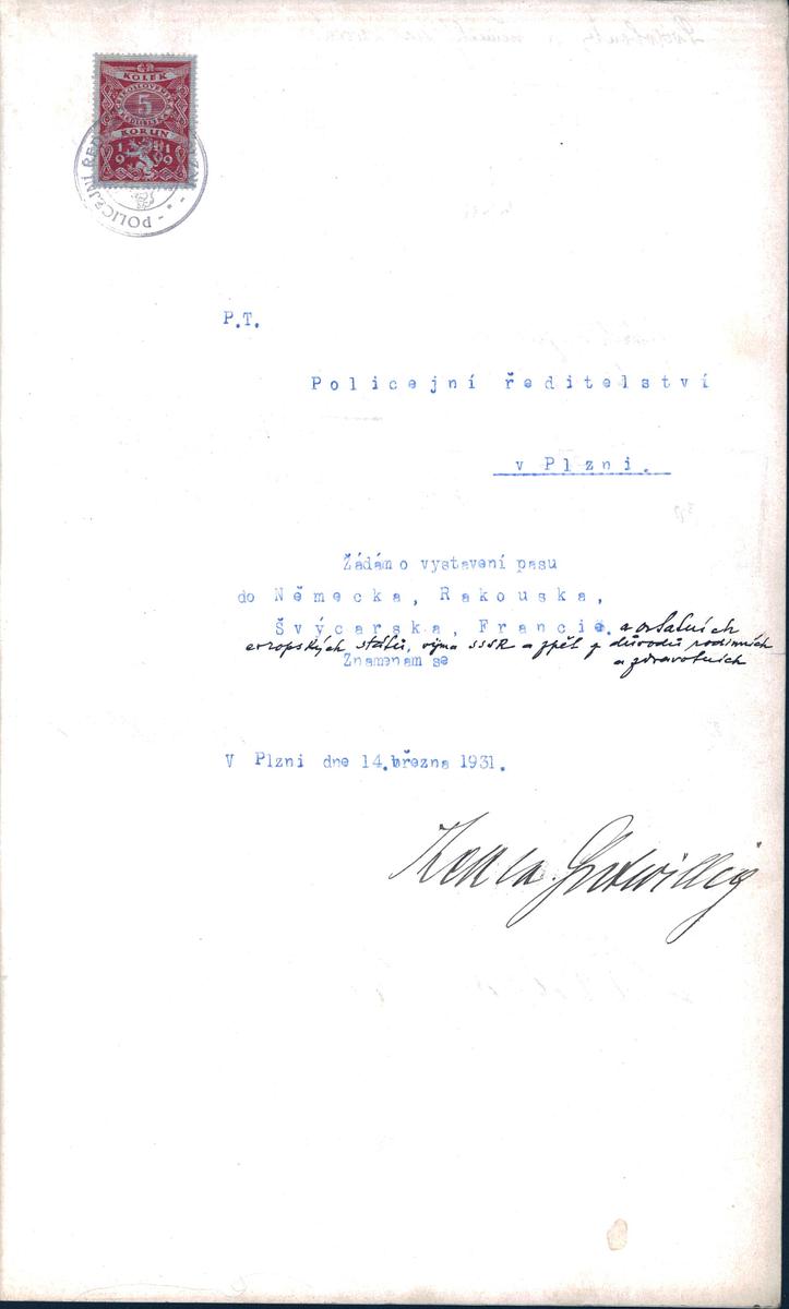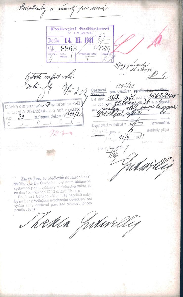 State Regional Archives in Pilsen > Police Directorate Pilsen > 1918-1951 > G > Gutwilligová Thekla
