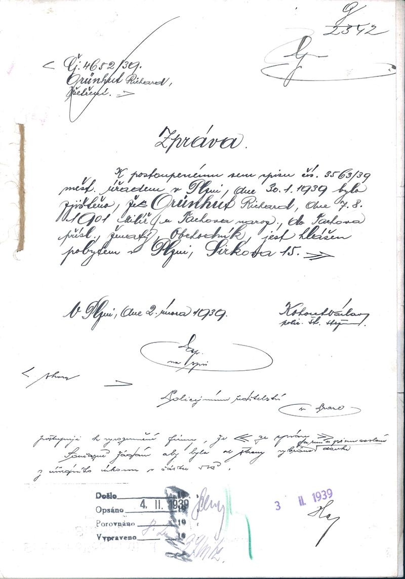 State Regional Archives in Pilsen > Police Directorate Pilsen > 1918-1951 > G > Grünhut Richard