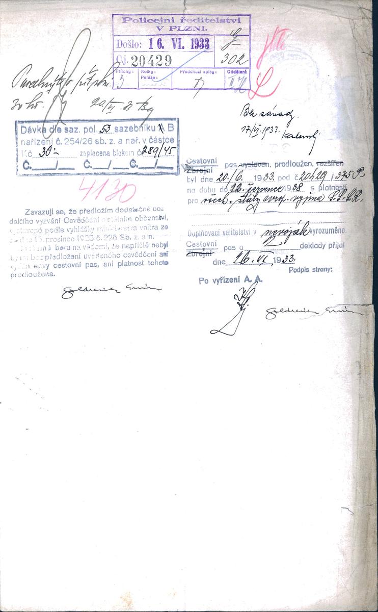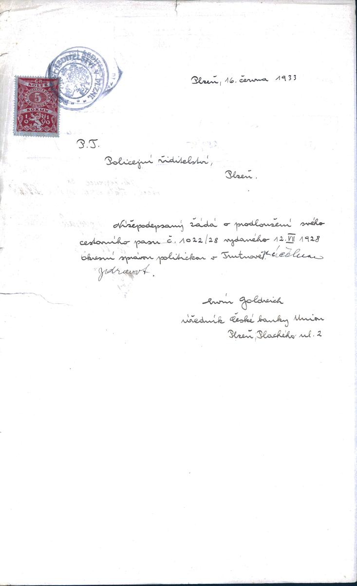 State Regional Archives in Pilsen > Police Directorate Pilsen > 1918-1951 > G > Goldreich Ervín