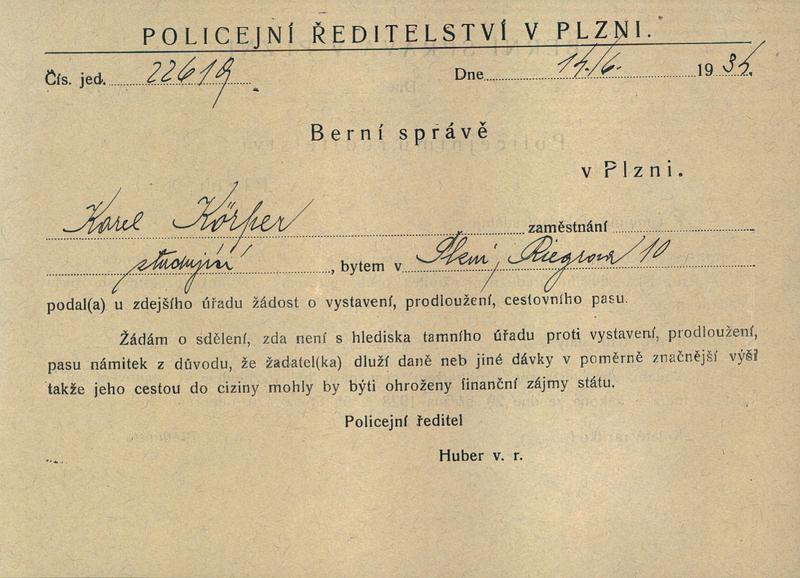 State Regional Archives in Pilsen > Police Directorate Pilsen > 1918-1951 > K > Körper Karel