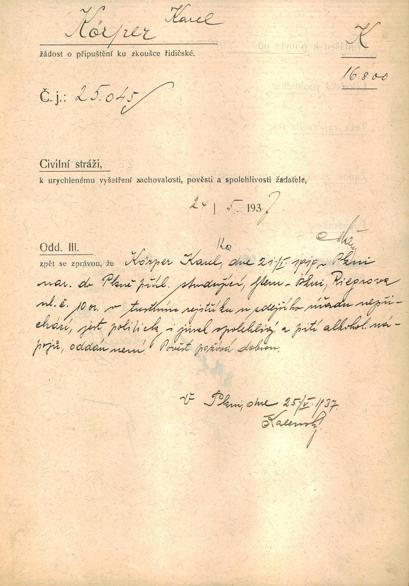 State Regional Archives in Pilsen > Police Directorate Pilsen > 1918-1951 > K > Körper Karel