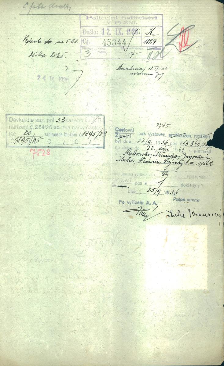 State Regional Archives in Pilsen > Police Directorate Pilsen > 1918-1951 > K > Krausová Julie