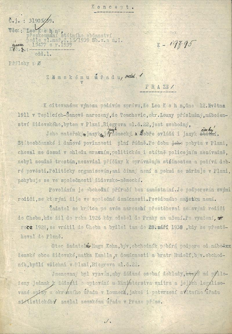 State Regional Archives in Pilsen > Police Directorate Pilsen > 1918-1951 > K > Kohn Leo