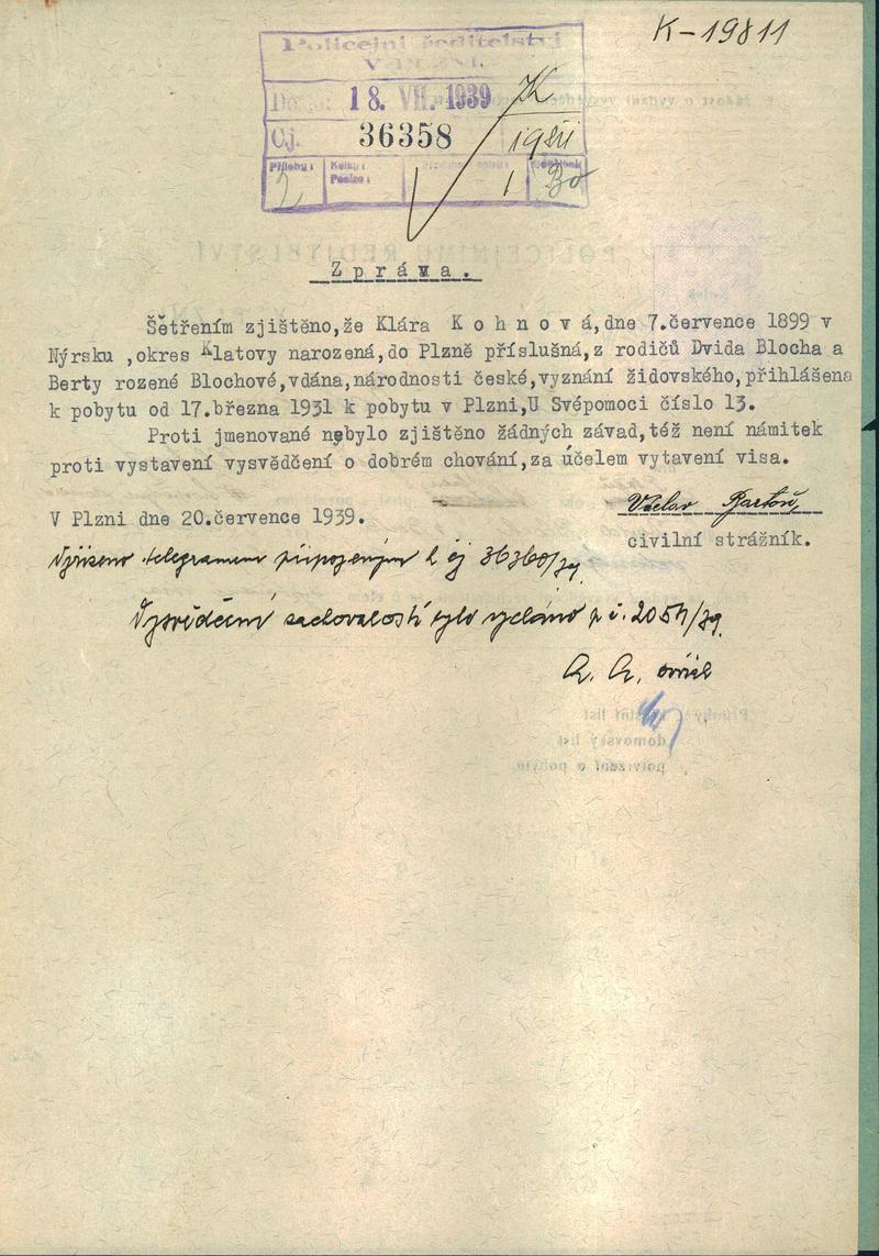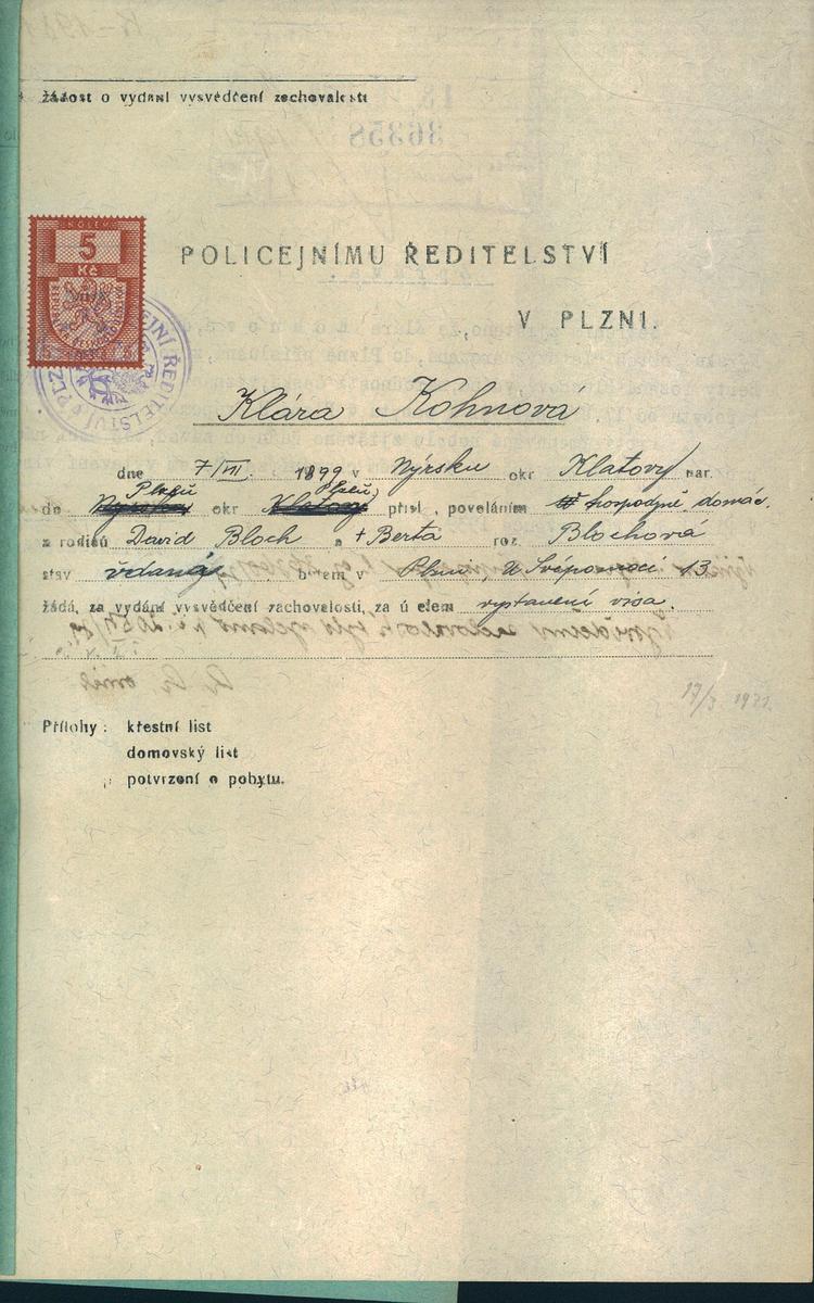 State Regional Archives in Pilsen > Police Directorate Pilsen > 1918-1951 > K > Kohnová Klára