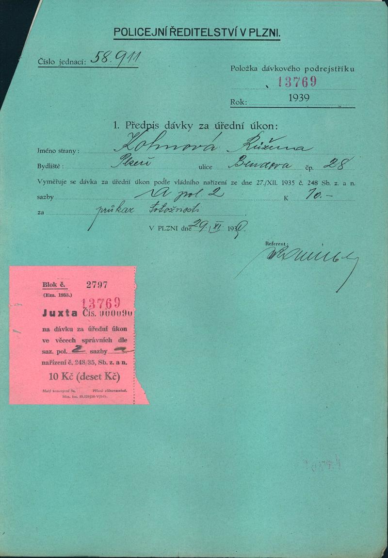 State Regional Archives in Pilsen > Police Directorate Pilsen > 1918-1951 > K > Kohnová Růžena
