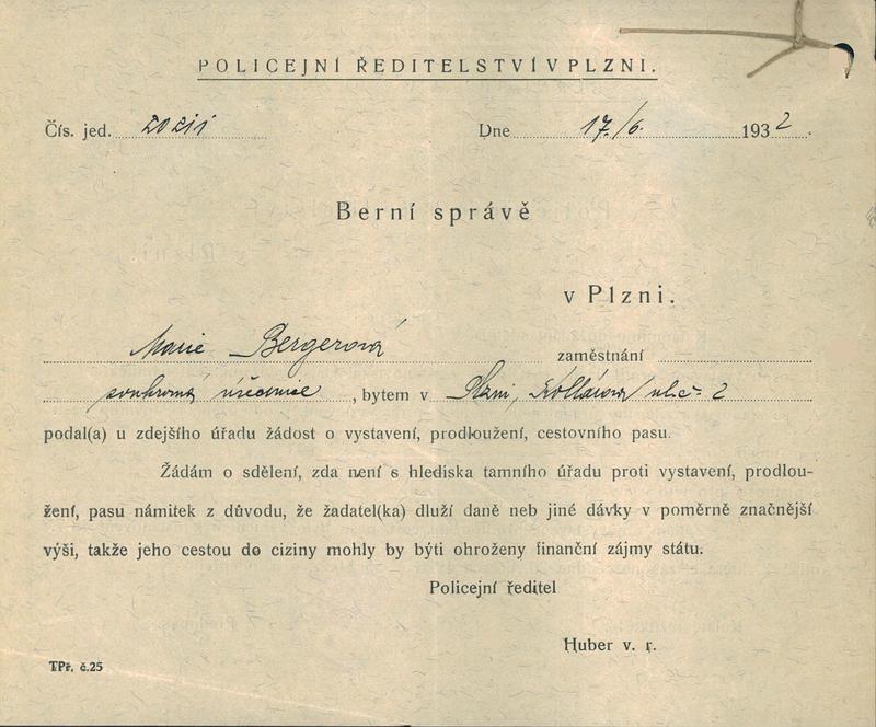 For publication purposes, contact the State Regional Archives in Pilsen, where the original document is located. The document was digitized by the Terezín Initiative Institute, the Terezín Album project.
