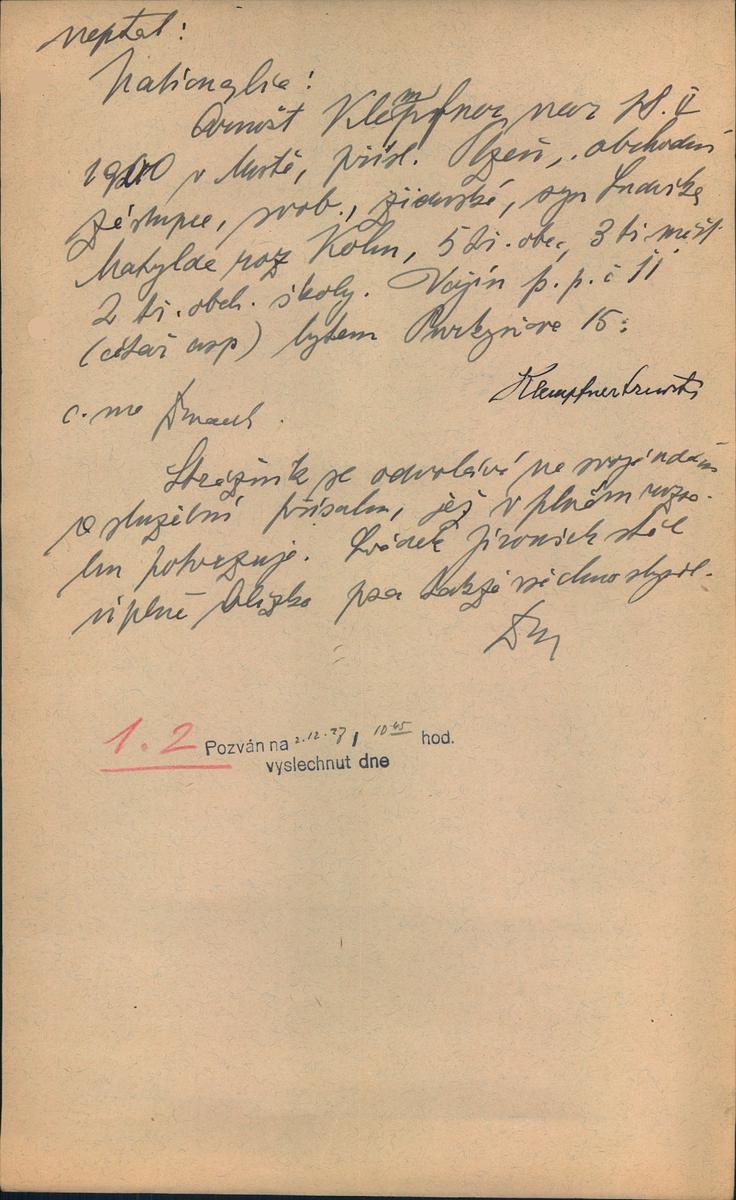 State Regional Archives in Pilsen > Police Directorate Pilsen > 1918-1951 > K > Klempfner Arnošt