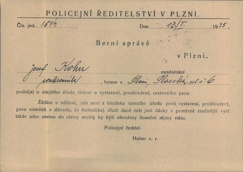 State Regional Archives in Pilsen > Police Directorate Pilsen > 1918-1951 > K > Kohn Josef