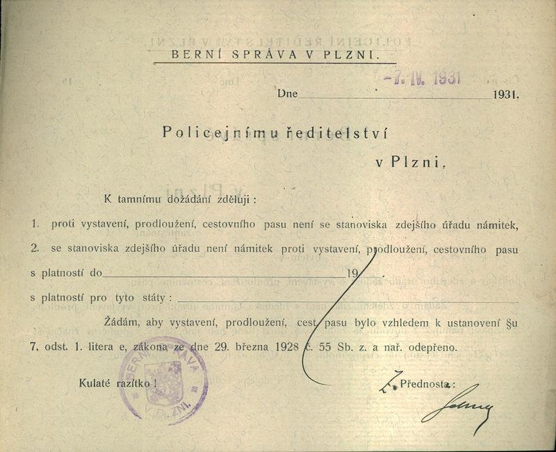 State Regional Archives in Pilsen > Police Directorate Pilsen > 1918-1951 > K > Klauber Mořic