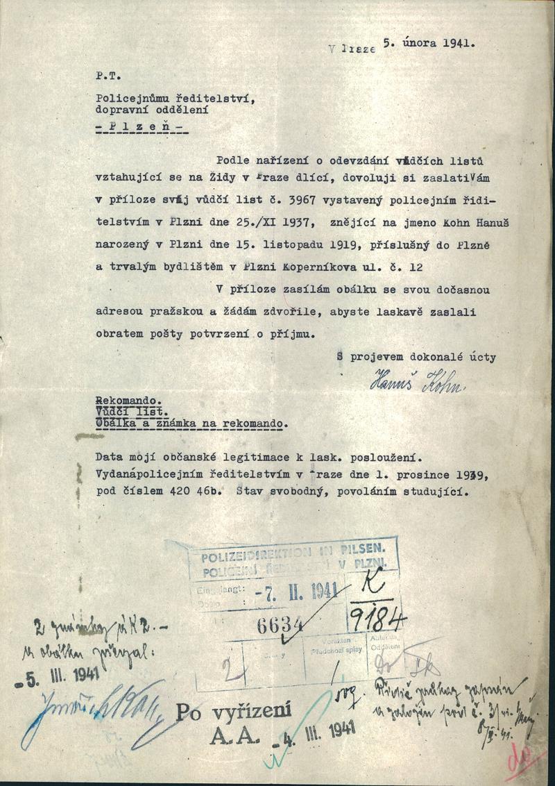 State Regional Archives in Pilsen > Police Directorate Pilsen > 1918-1951 > K > Kohn Hanuš Jiří