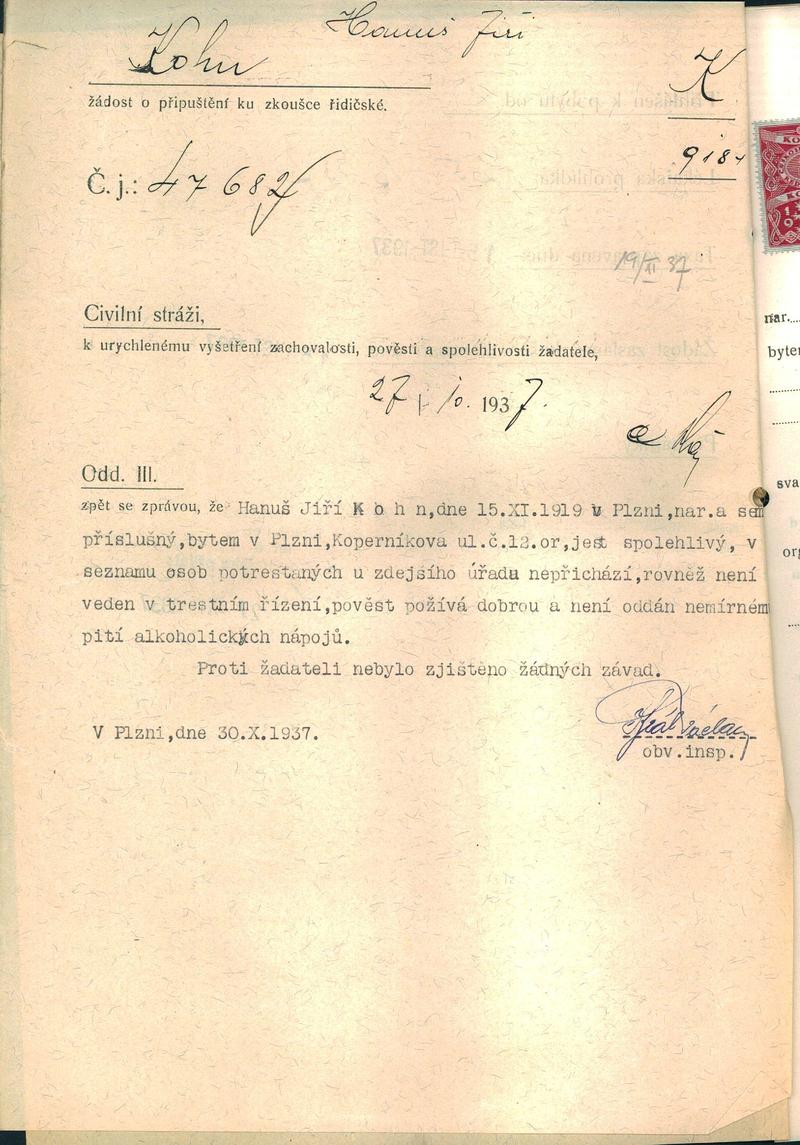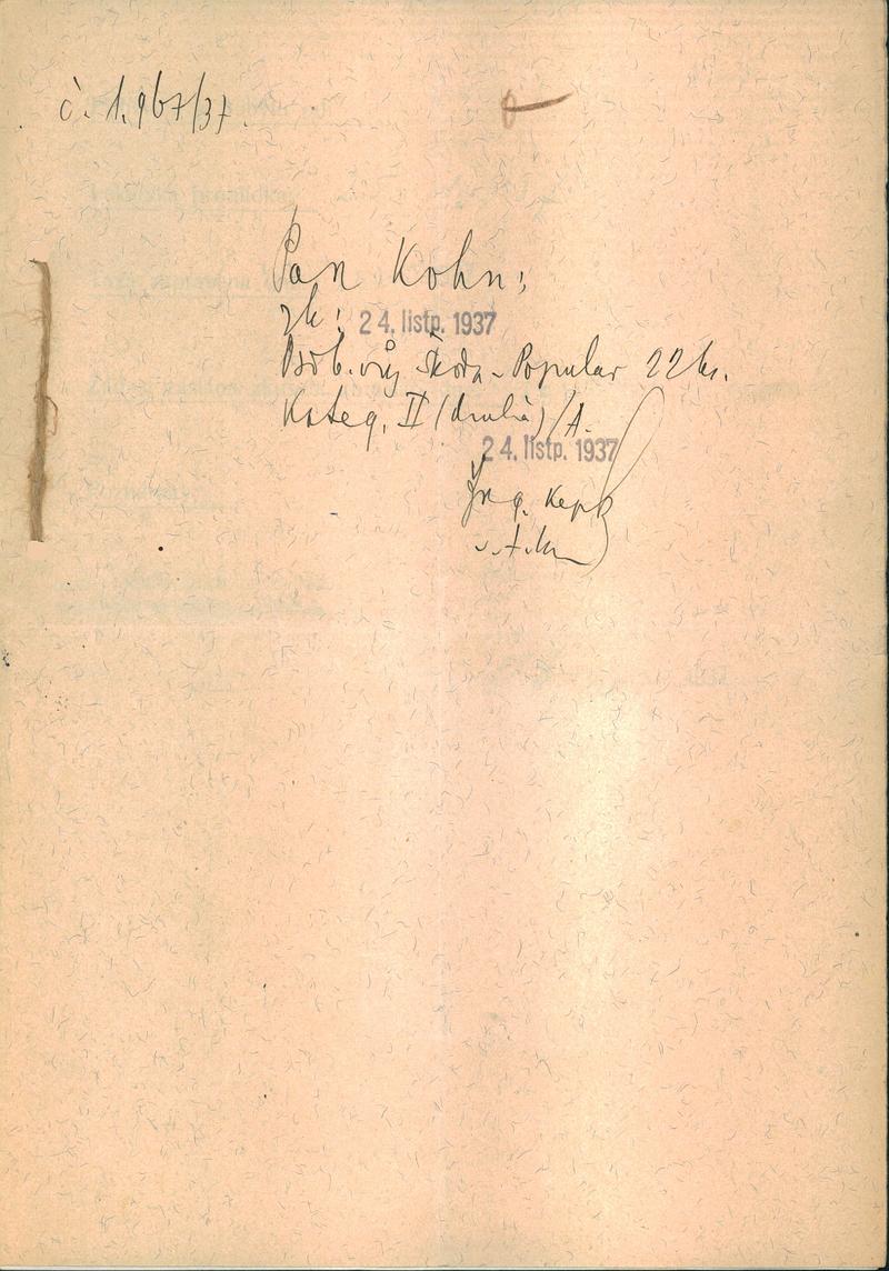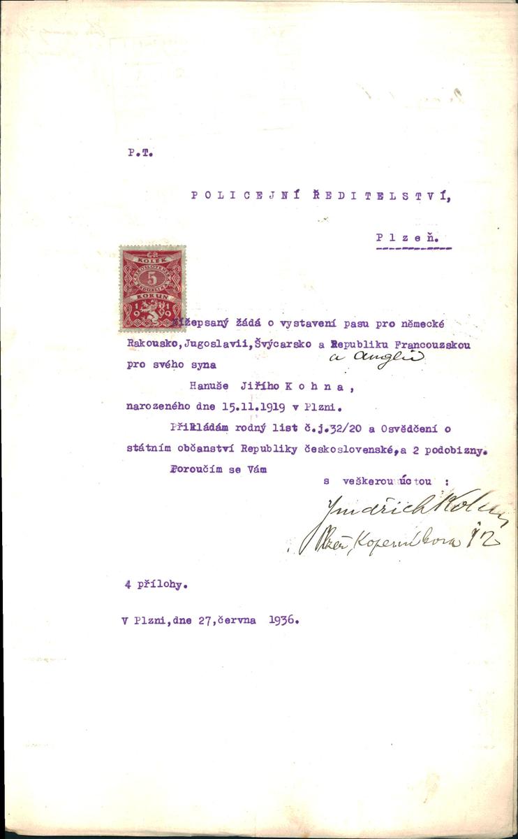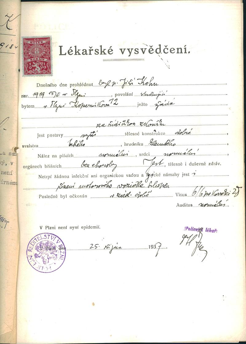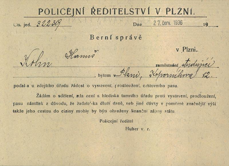 State Regional Archives in Pilsen > Police Directorate Pilsen > 1918-1951 > K > Kohn Hanuš Jiří