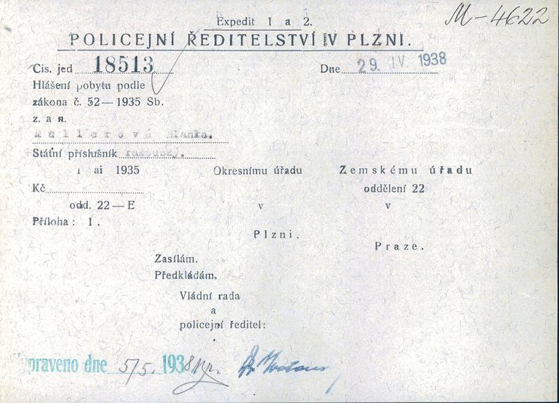 State Regional Archives in Pilsen > Police Directorate Pilsen > 1918-1951 > M > Müllerová Blanka