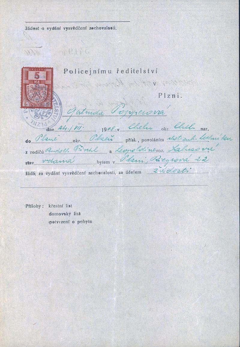 State Regional Archives in Pilsen > Police Directorate Pilsen > 1918-1951 > P > Popperová Gertruda