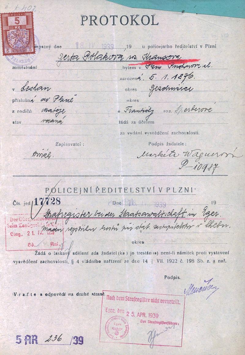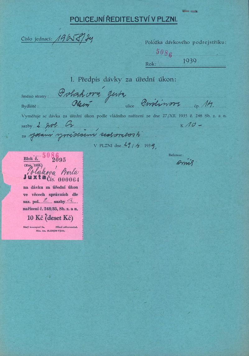 State Regional Archives in Pilsen > Police Directorate Pilsen > 1918-1951 > P > Pollaková Berta