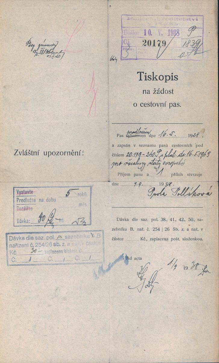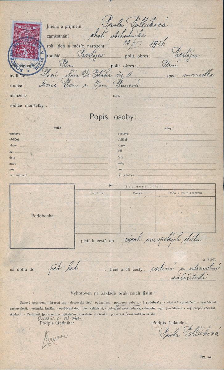 State Regional Archives in Pilsen > Police Directorate Pilsen > 1918-1951 > P > Pollaková Pavla