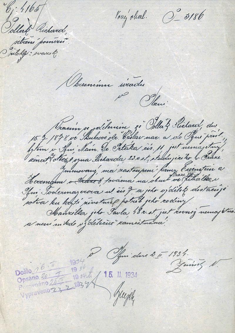 State Regional Archives in Pilsen > Police Directorate Pilsen > 1918-1951 > P > Pollak Richard