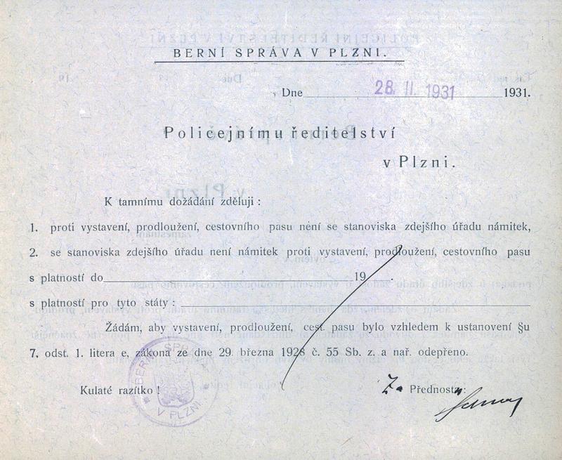 For publication purposes, contact the State Regional Archives in Pilsen, where the original document is located. The document was digitized by the Terezín Initiative Institute, the Terezín Album project.