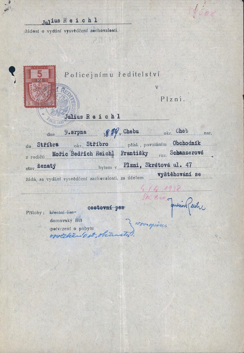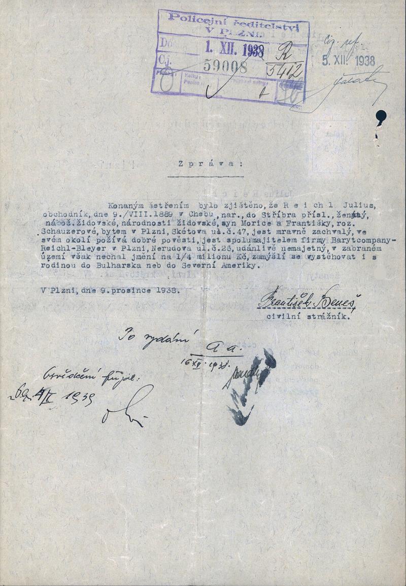State Regional Archives in Pilsen > Police Directorate Pilsen > 1918-1951 > R > Reichl Julius
