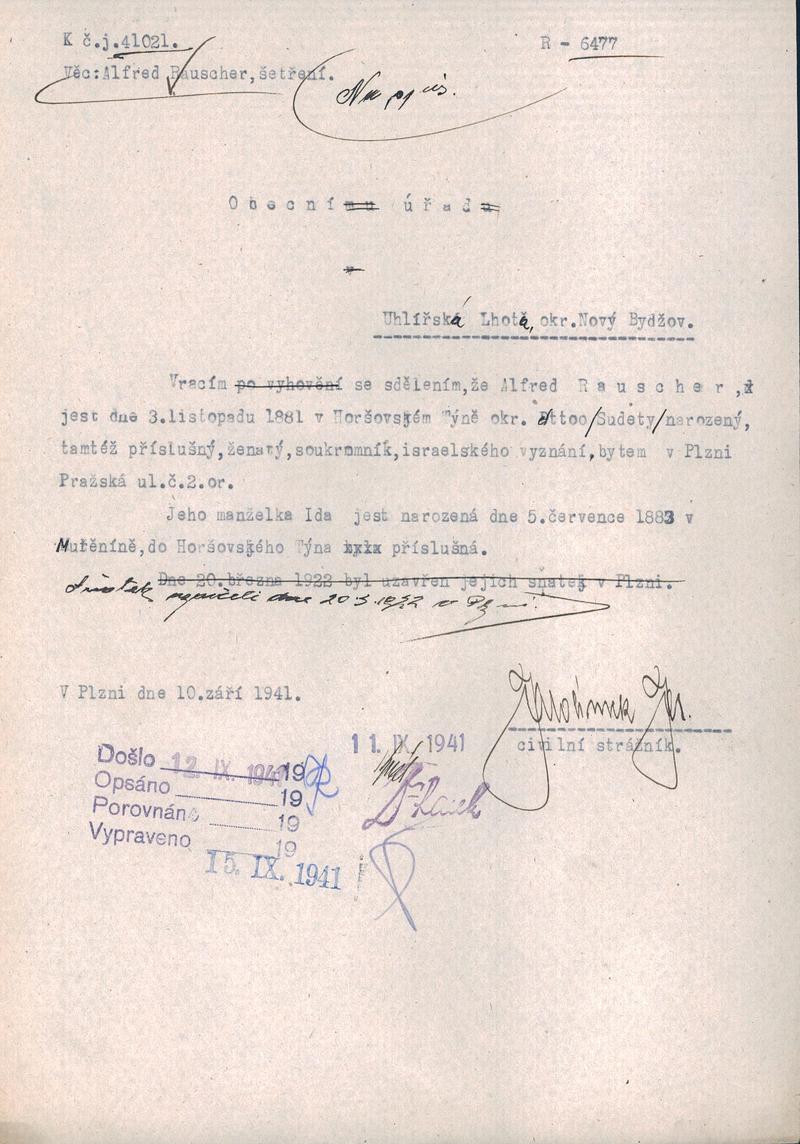 State Regional Archives in Pilsen > Police Directorate Pilsen > 1918-1951 > R > Rauscher Alfred