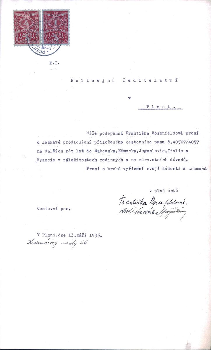 State Regional Archives in Pilsen > Police Directorate Pilsen > 1918-1951 > R > Rosenfeldová Františka