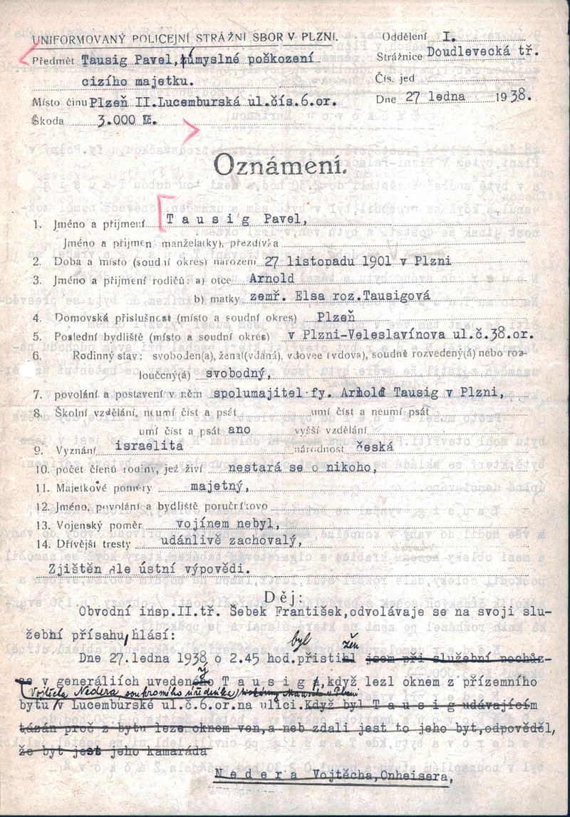 State Regional Archives in Pilsen > Police Directorate Pilsen > 1918-1951 > T > Taussig Pavel