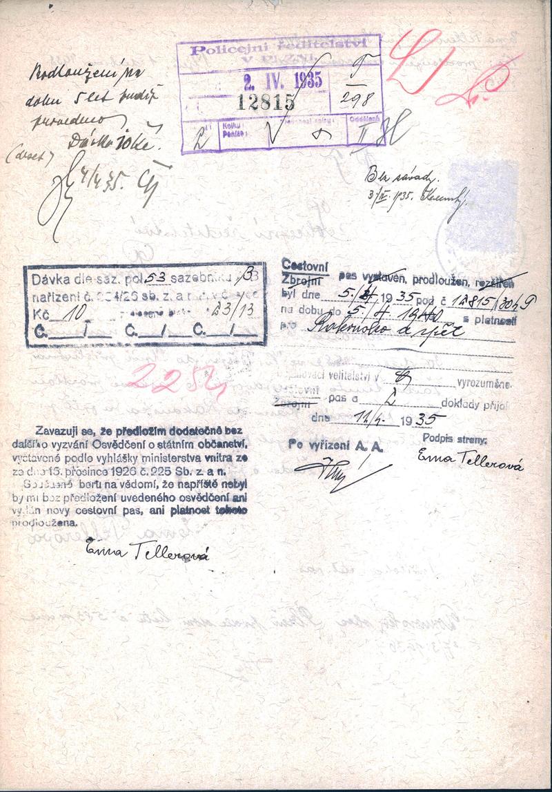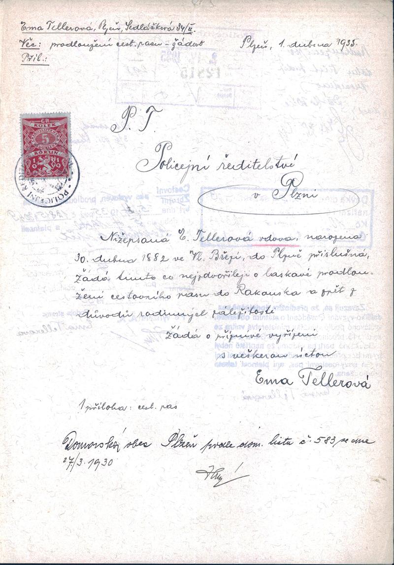 State Regional Archives in Pilsen > Police Directorate Pilsen > 1918-1951 > T > Tellerová Ema
