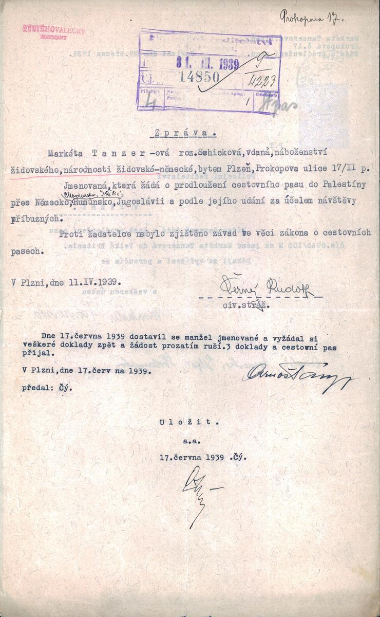 State Regional Archives in Pilsen > Police Directorate Pilsen > 1918-1951 > T > Tanzerová Markéta
