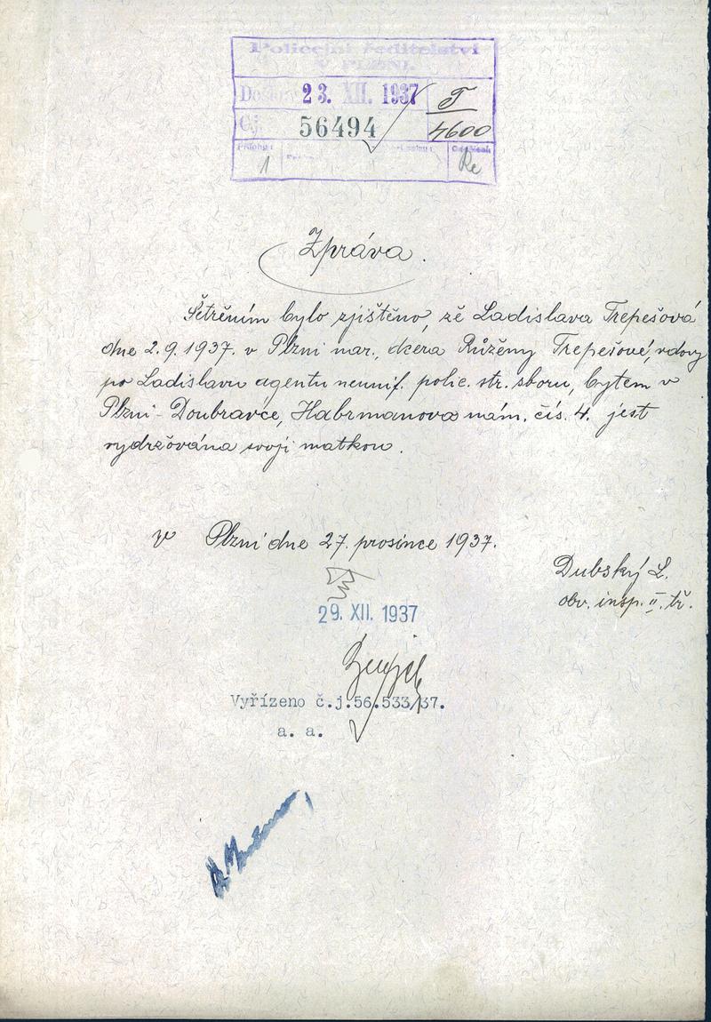 State Regional Archives in Pilsen > Police Directorate Pilsen > 1918-1951 > T > Trepešová Ladislava