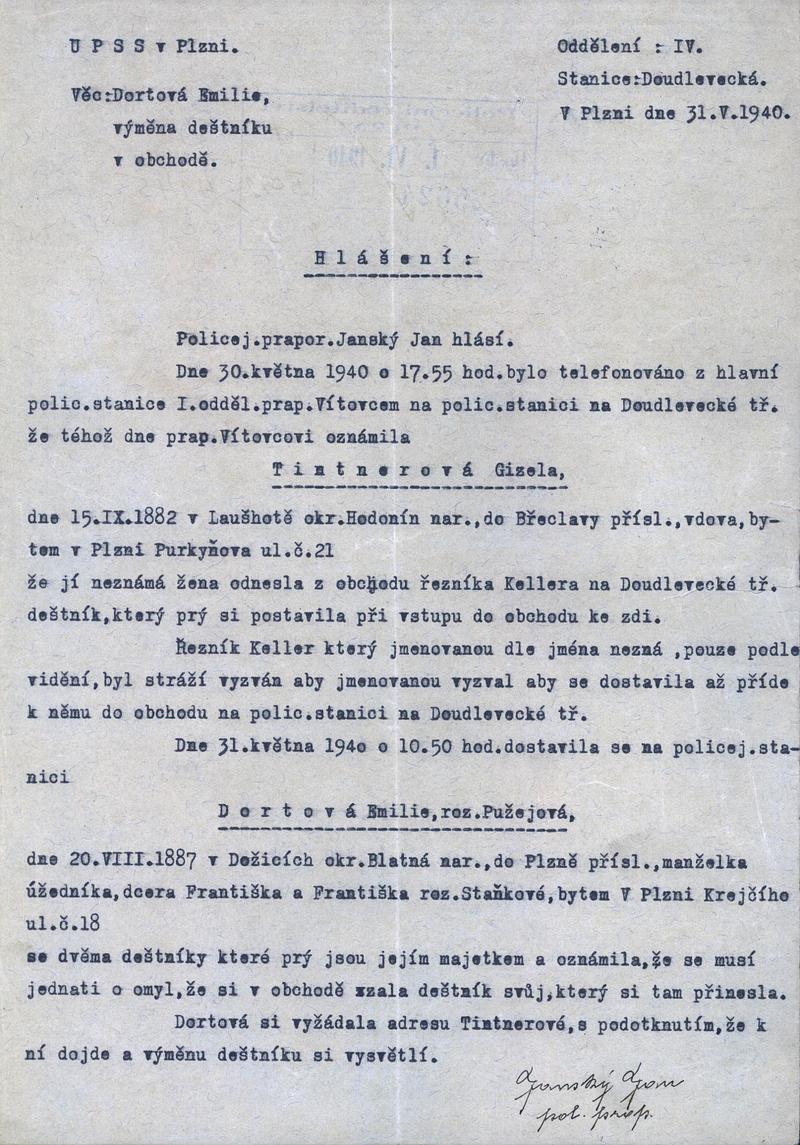 State Regional Archives in Pilsen > Police Directorate Pilsen > 1918-1951 > T > Tintnerová Gisela
