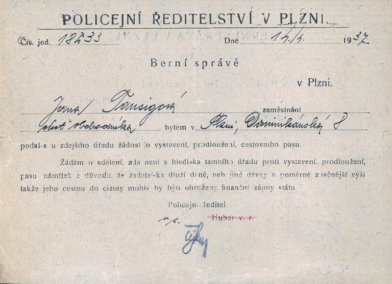 State Regional Archives in Pilsen > Police Directorate Pilsen > 1918-1951 > T > Taussigová Jana