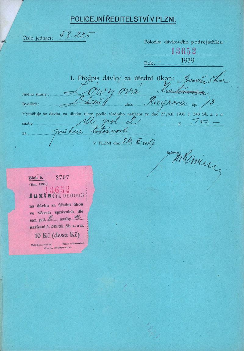 State Regional Archives in Pilsen > Police Directorate Pilsen > 1918-1951 > L > Löwyová Bedřiška
