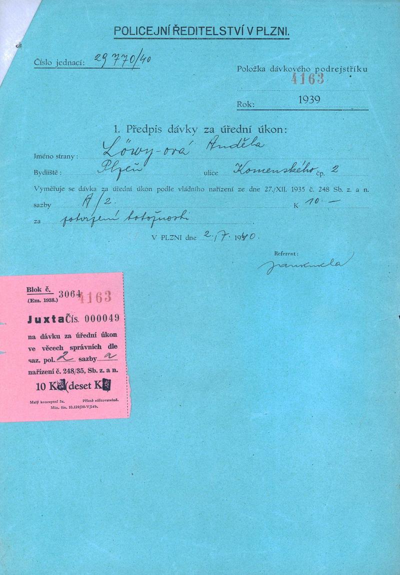 State Regional Archives in Pilsen > Police Directorate Pilsen > 1918-1951 > L > Löwyová Angela