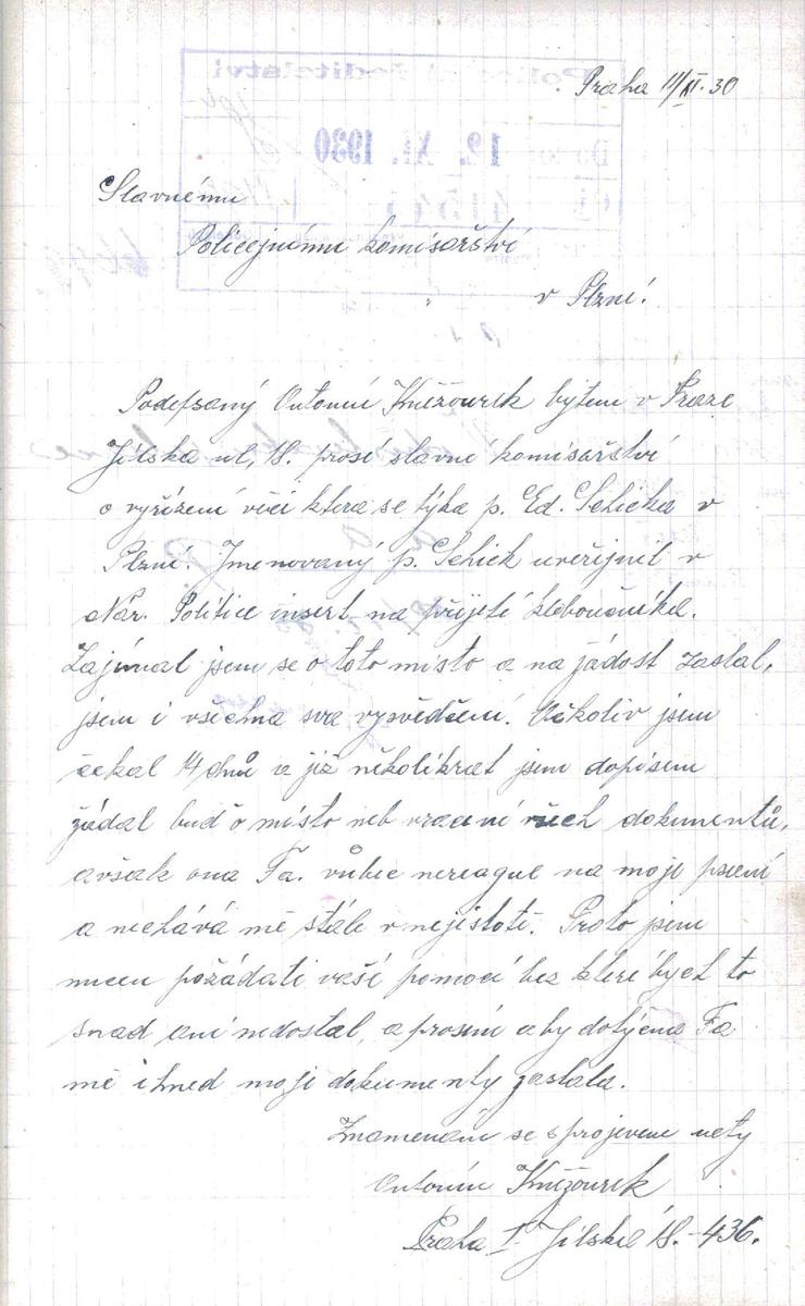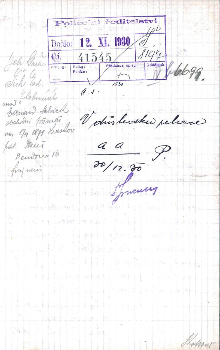State Regional Archives in Pilsen > Police Directorate Pilsen > 1918-1951 > Š > Schick Edvard