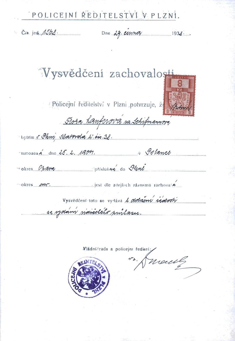 State Regional Archives in Pilsen > Police Directorate Pilsen > 1918-1951 > Š > Schifmanová Flora