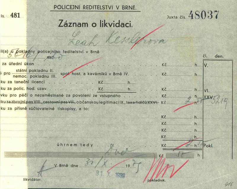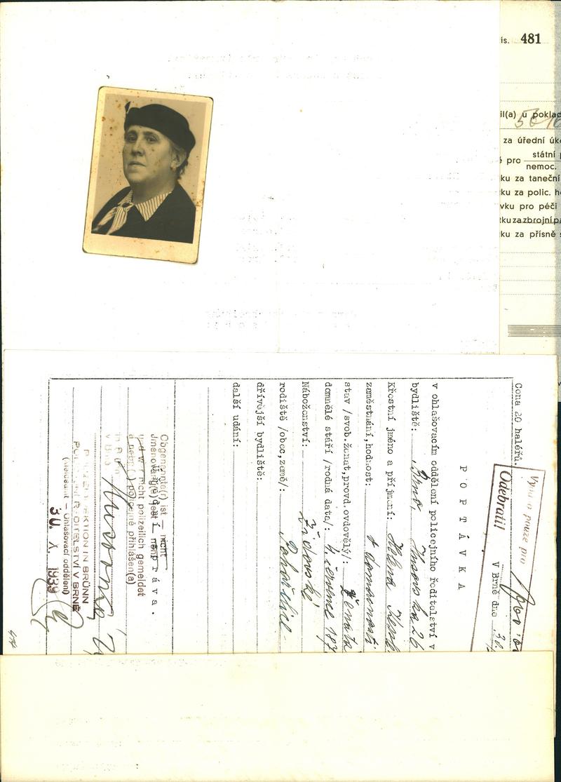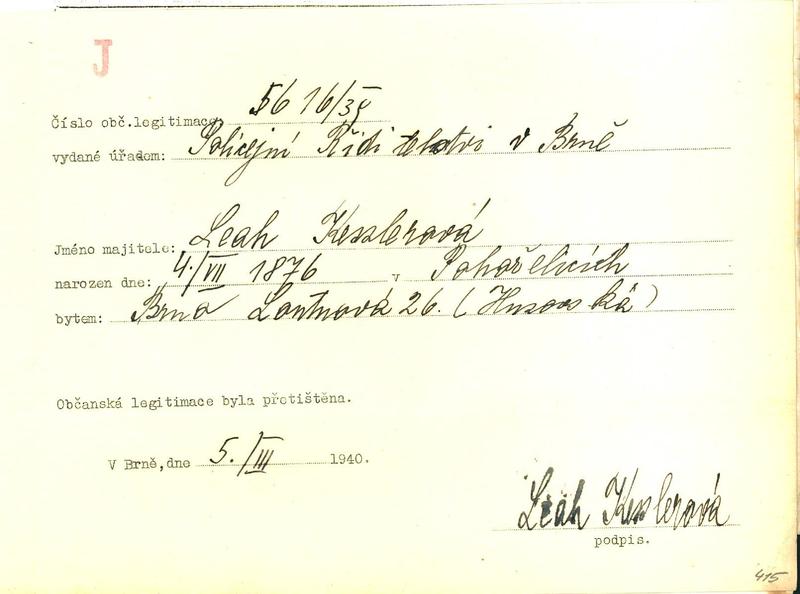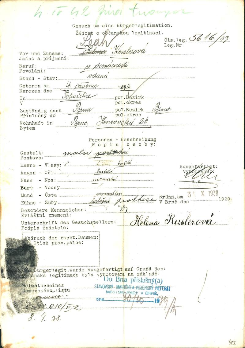 Moravský zemský archiv Brno > Policejní ředitelství Brno > Žádosti židovských občanů určených k transportu o občanské legitimace > Kesslerová Lea Helena