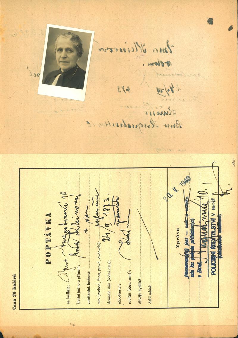 Moravský zemský archiv Brno > Policejní ředitelství Brno > Žádosti židovských občanů určených k transportu o občanské legitimace > Kleinová Emma