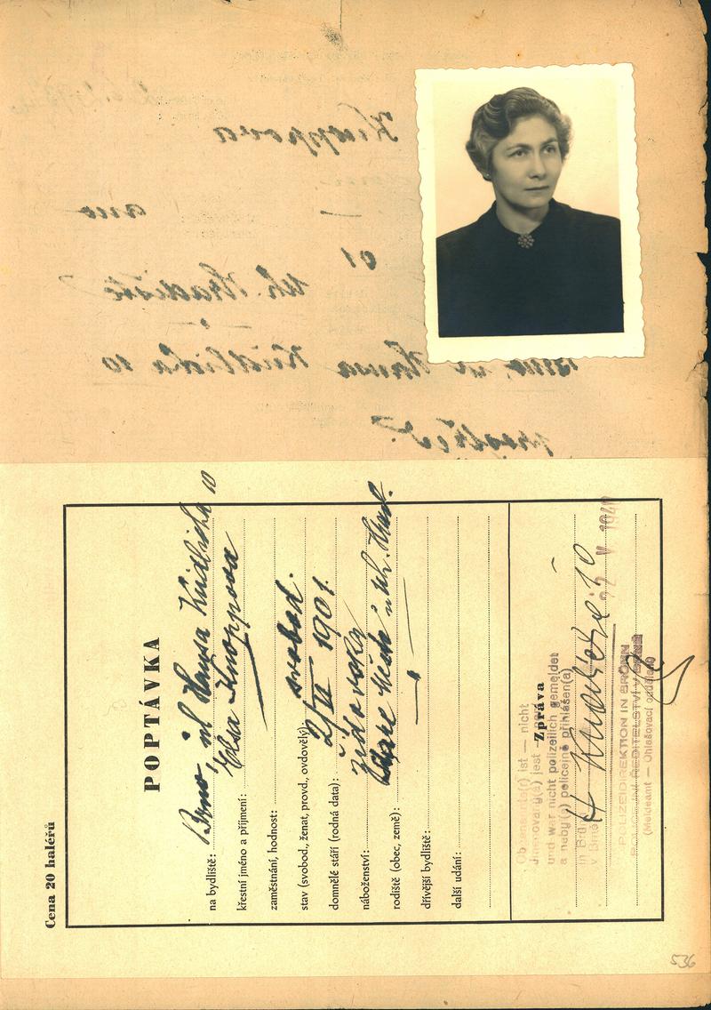 Moravský zemský archiv Brno > Policejní ředitelství Brno > Žádosti židovských občanů určených k transportu o občanské legitimace > Knoppová Eliška